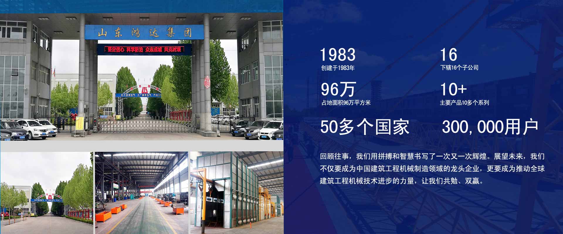 山東鴻達建工集團有限公司創建于1983年,是一個集建筑工程機械制造業、食品加工業、建筑房地產業、餐飲服務業、聚氨酯新型保溫材料等為一體的多元化大型企業集團,下轄16個子公司,占地面積96萬平方米,建筑面積68萬平方米。